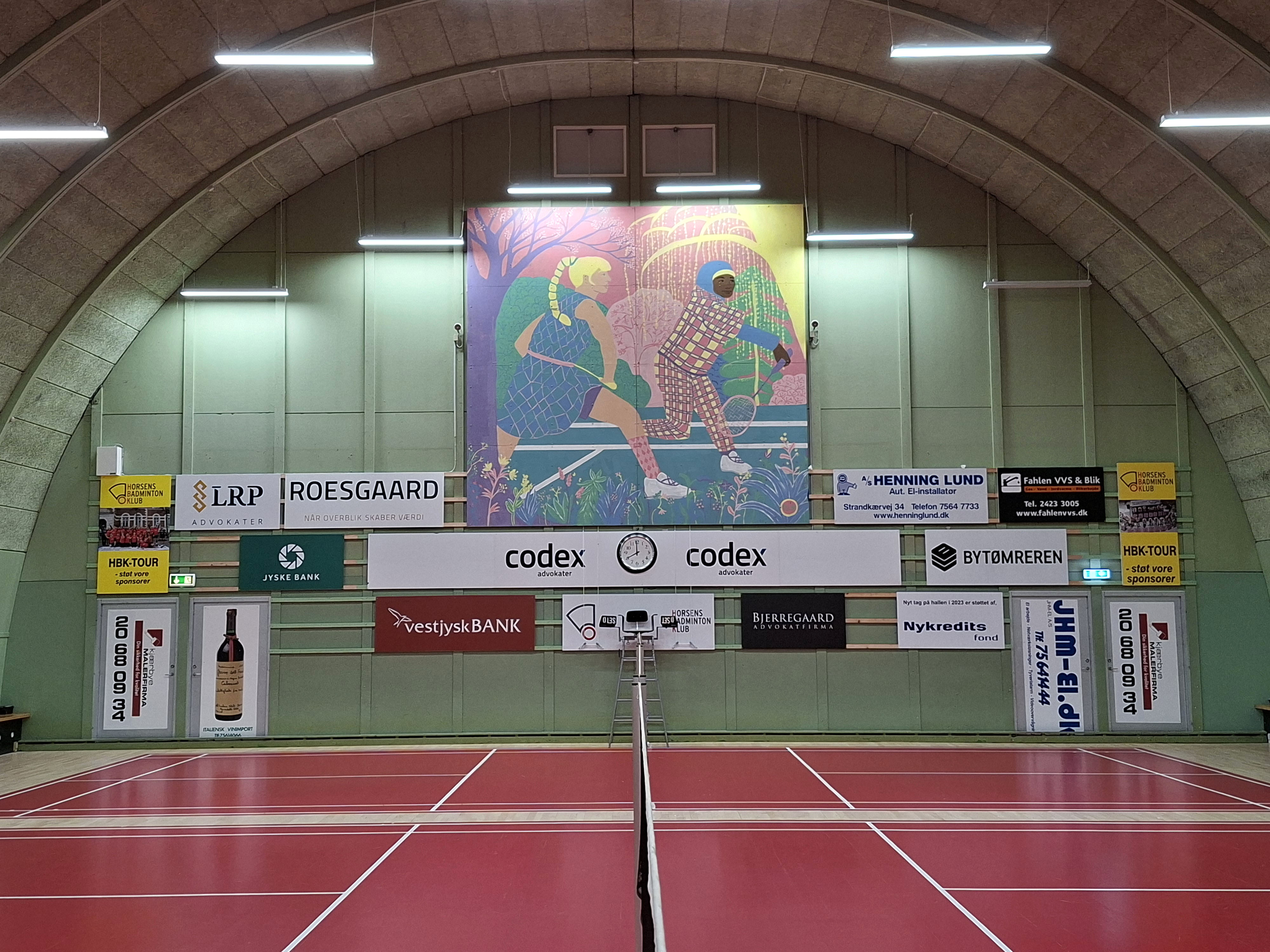 Tre gigantværker på hver næsten 5 x 5 meter blev til som et live-painting-event i samarbejde med Galleri Grisk. Kunstneren, der var udvalgt til at sætte sit kunstneriske aftryk på EM i badminton, hedder Pil Anna Tesdorpf, men går under kunstnernavnet 'PILAT'.